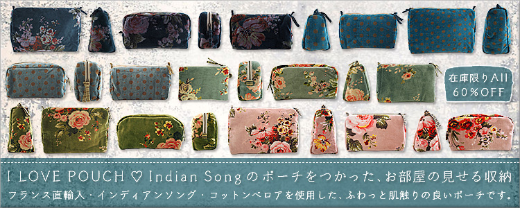 『SALE・セール60%OFF』【フランス直輸入】インディアンソング Indian Song・花柄 ベロア ポーチ・L/Bangalore・Avocat アヴォカ(W31xH21xマチ11cm)Type.B