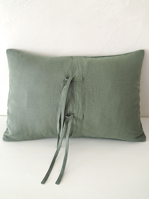↑こちらのクッションカバーはリボン開閉式です。中材はこちらから出し入れしていただけます。