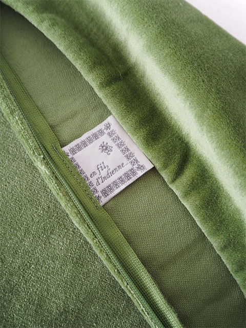 ↑en fil d'Indienne オンフィル ダンディエンヌのブランド布タグも縫い付けられています。(*こちらのクッションカバーは、内側にブランド布タグが縫い付けられています。)