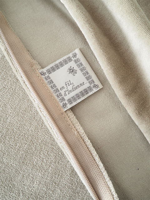 ↑en fil d'Indienne オンフィル ダンディエンヌのブランド布タグも縫い付けられています。(*こちらのクッションカバーは、内側にブランド布タグが縫い付けられています。)