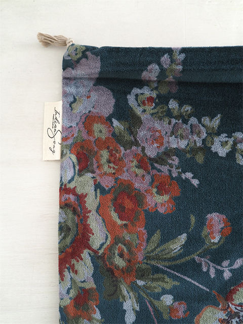 ↑↓やわらかく、さらっとした肌触りのコットン100%のベロア生地を使用しています。 こちらのCanard・カナール色は、深みのある渋いネイビーにグレーが少し混じったようなお色です。『Canard・カナール』は、フランス語で鴨を意味します。鴨の羽の色のような、とても美しいお色です。光の当たり方でほんのりグリーン味を感じたりと、色の印象が変化するのも魅力です。