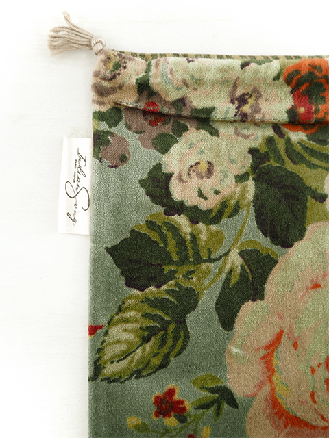 落ち着いた華やかさ、上品で大人っぽい、とても素敵な花柄に仕上がっています。カーキからグレーブルーの間にあるお色を使用していますので、カーキ系、グリーン系、ブルー系、グレー系と特に相性が良く、カラーコーディネートしやすいのも魅力です。