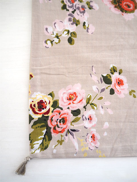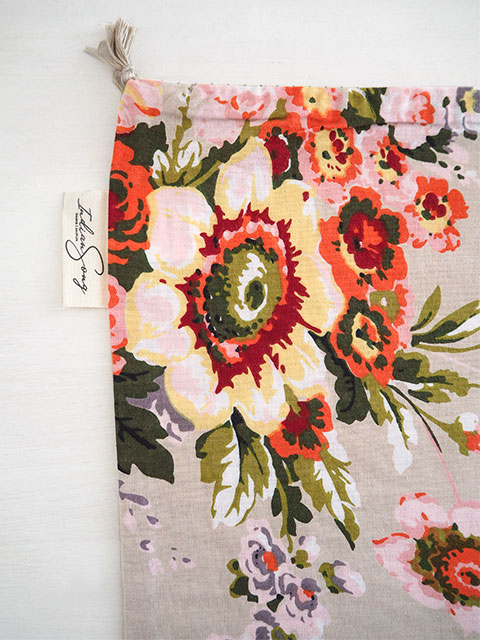 ↑↓Beige・ベージュ色のベース地に、ピンク、レッド、イエローなど、色とりどりの花柄がプリントされています。繊細なタッチで描かれた花柄は、華やかながら、どこかノスタルジックな雰囲気をまとっていて、とても素敵です。
