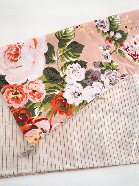 ↑↓こちらのコットンクッションカバーはチャック開閉式です。中材はこちらから出し入れ可能です。