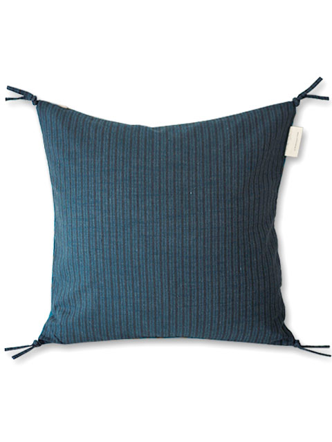 裏面は、フランスらしい、シックな色合いの細いストライプ柄のコットン生地が使用されていて、インテリアに合わせて2通りお楽しみいただけます。