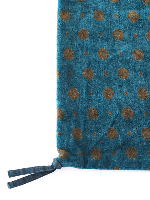 表面は、水玉模様がプリントされた、コットン100%のベロア生地を使用しています。陽気で飛び跳ねるような水玉模様。ポルカドットの陽気さとベロアのやわらかさが絶妙にマッチしています。
