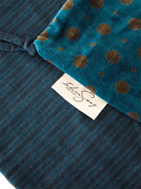 (*『Indian Song・インディアンソング』製品は、インドで1点1点、手作業で製作されています。その為、中綿の厚み、全体のサイズ、ミシン縫製、手縫い刺繍など、作り手さんによって、作品の表情が若干異なります。また、絵柄の取り方やプリントの濃淡、色ムラや擦れなど、それぞれ多少の誤差がございます。これらは『Indian Song・インディアンソング』製品によく見られる、製品の特性となりますので、ご注文いただく際は、予めご了承くださいますよう、どうぞ宜しくお願いいたします。