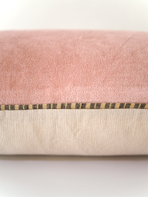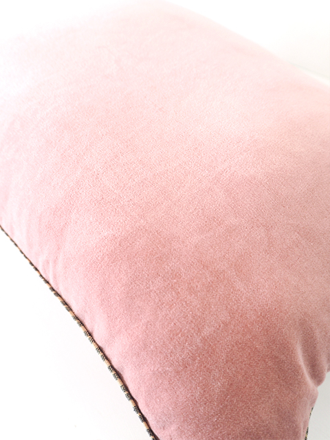 *こちらは、『Namaste・ナマステ』シリーズの、Rose Poudre・ローズ プードル色のベロア ピロークッションカバーです(W50xH35cmサイズ)。