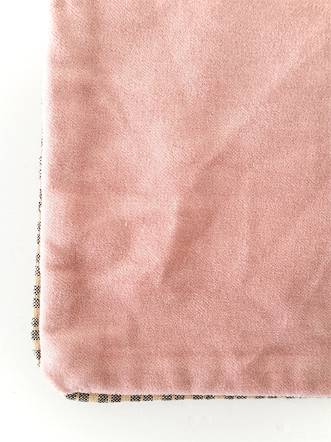 ↑↓やわらかく、さらっとした肌触りのコットン100%のベロア生地を使用しています。 こちらのRose Poudre・ローズ プードル色は、パステルオレンジにピンクが混じったようなお色、砂糖菓子のようなとても可愛らしいお色です。光の当たり方で色の印象が変化するのも魅力です。