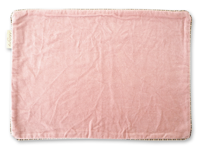 表面は、やわらかく、さらっとした肌触りのコットン100%のベロア生地、裏面は、素朴な質感のコットン無地生地を使用しています。