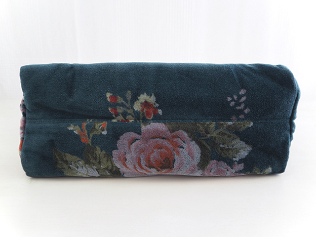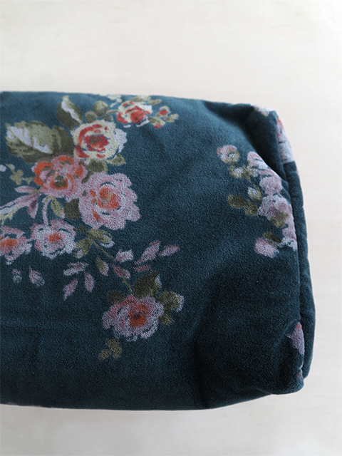 表面と裏面は、花柄がプリントされた、コットン100%のベロア生地を使用しています。インドの瑞々しい花木を思わせるような、お花や植物が、華やかかつ繊細なタッチで描かれています。躍動感あふれるお花柄のコットンベロア生地は、どこか神秘的な雰囲気を醸し出していて、とても素敵です。