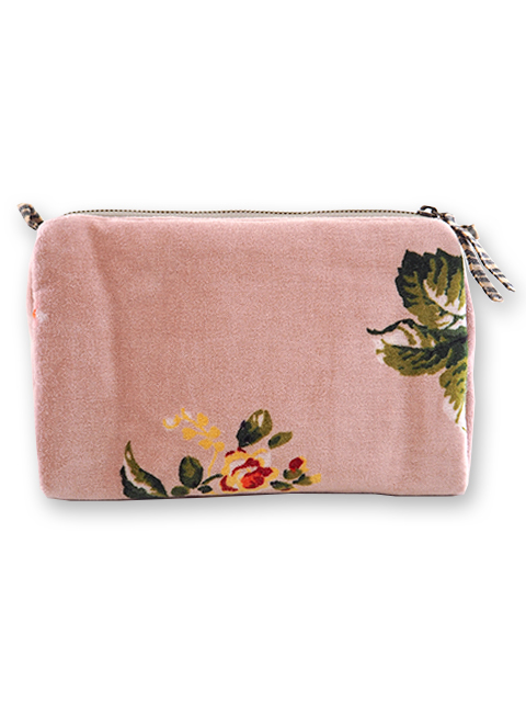どこか儚げさも感じる繊細かつ華やかな花柄のベロア ポーチは、持っているだけで、ちょっとテンションがあがりそう。バッグの中が、お花が咲いたようにパッと明るくなりますよ。