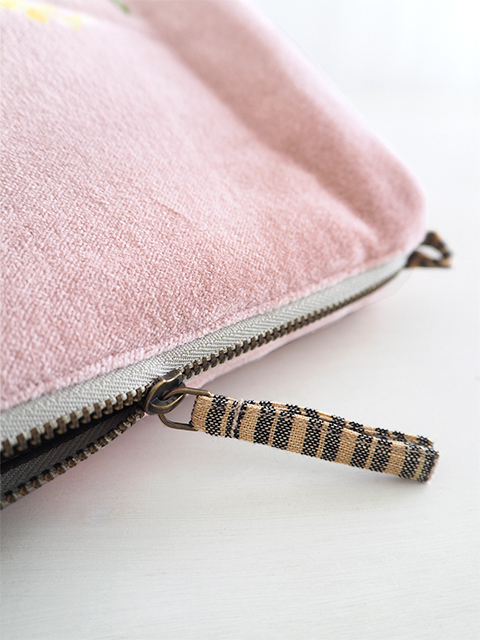 ↑↓こちらのポーチはチャック開閉式です。こちらのポーチに使用されているチャックは、アンティーク加工が施されています。どこかノスタルジックな雰囲気でとても素敵です。