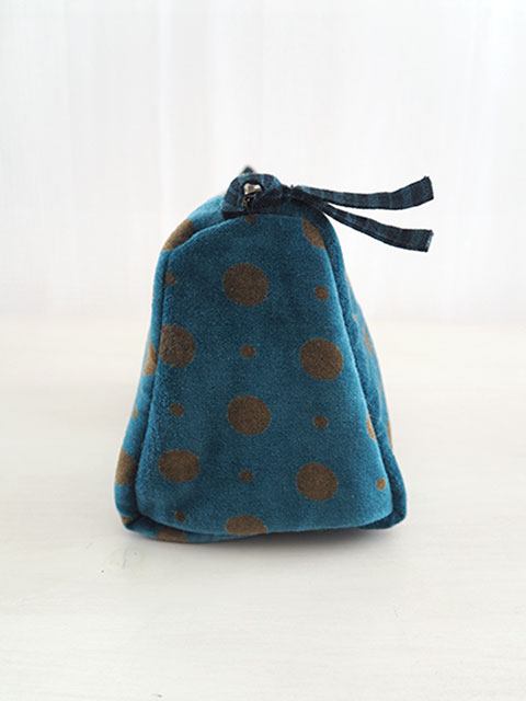 ↑↓こちらは、『Mumbai・ムンバイ』シリーズの、Teal・ティール色のベロア ポーチです(M2サイズ/W21xH13xマチ9.5cm)。