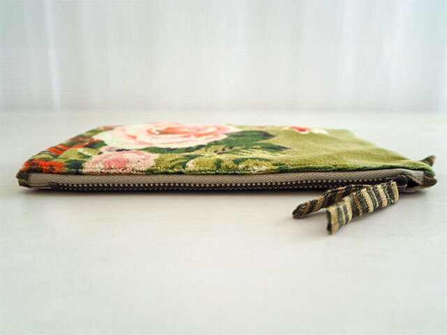 ↑↓こちらのポーチはチャック開閉式です。こちらのポーチに使用されているチャックは、アンティーク加工が施されています。どこかノスタルジックな雰囲気でとても素敵です。