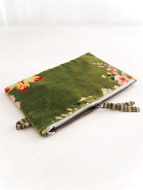 *こちらは、「Bangalore・バンガロール」シリーズの、Avocat・アヴォカ色のベロア ポーチです(Sサイズ/約W19.7xH13.2cmxマチ0.8cm)