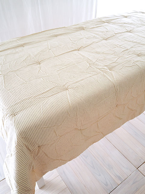 ↑ふわっとした中綿の入った、程よい厚みのコットン キルト マルチカバーです。コットン生地ならではの素朴感、やさしい手触り、ナチュラルな質感が魅力です。折り畳むと、意外とコンパクトになりますので、収納もしやすいですよ。