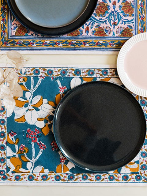 〈『Jamini ジャミニ』のテーブルマット(ランチョンマット)は、上画像のような1枚ずつ違うデザインを組み合わせたテーブルコーディネートがとても素敵ですよ~。〉