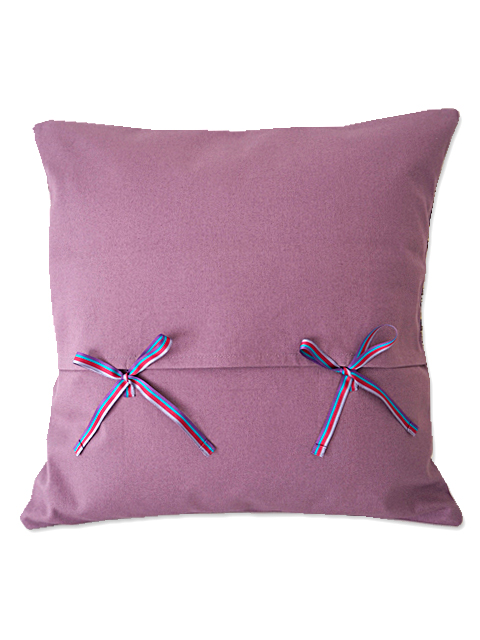 ↑↓こちらは裏面です。裏面は綺麗なモーヴ色のコットンキャンバス地を使用しています。程よい厚み、ややハリ感のある良質の生地です。インテリアに合わせて両面お楽しみいただけます。